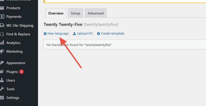 Після створення шаблону воно поверне нас на сторінку додавання мови – це нормально. Ми створили шаблон для додавання нової мови.