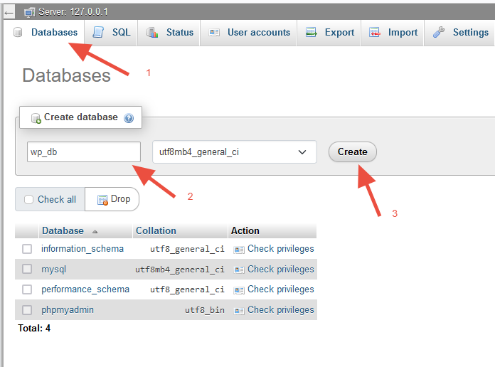 Починаємо встановлення WordPress на XAMPP. Нам потрібно створити базу даних після (або до, нам порядок неважливий, але без бази даних неможливо буде почати установку WordPress) розмістити файли WordPress в директорії htdocs і запустити установку.