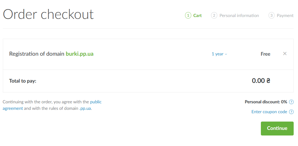 Після перевірки домену мені пощастило — домен є вільним для реєстрації.