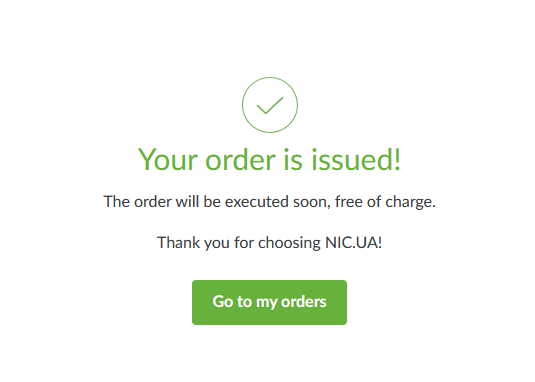 За кілька хвилин доменом можна буде користуватись (реєстратор надішле вам лист коли замовлення буде виконано).